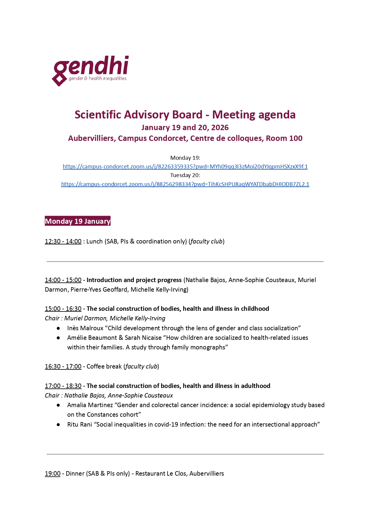 Le Conseil Scientifique de Gendhi s’est réuni pour la deuxième fois depuis le début du projet les lundi 19 et mardi 20 janvier 2026 au Centre des Colloques (Campus Condorcet – Aubervilliers).